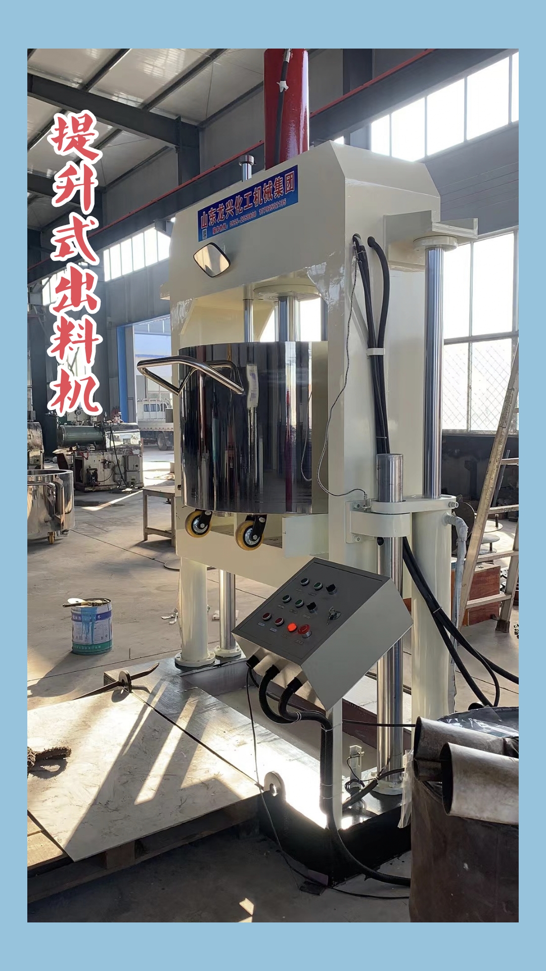 液壓出料機是與本廠出產的高粘度強力攪拌機相配套的出料灌裝設備。它能將相應容積攪拌桶內的油墨、膠粘劑、硅膠等高粘度物料通過壓料盤施壓 使物料盤上出料口或攪拌桶下出料口出料,從而實現對 物料各種形式的包裝