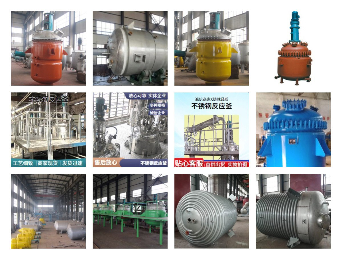 反應釜材質一般有碳錳鋼、不銹鋼、鋯、鎳基合金及其它復合材料。反應釜可采用SUS304、SUS316L等不銹鋼材料制造。攪拌器有錨式、框式、槳式、渦輪式,刮板式,組合式,轉動機構可采用擺線針輪減速機、無級變速減速機或變頻調速等,可滿足各種物料的特殊反應要求。密封裝置可采用機械密封、填料密封等密封結構。加熱、冷卻可采用夾套、半管、盤管、米勒板等結構,加熱方式有:蒸汽、電加熱、導熱油,以滿足耐酸、耐高溫、耐磨損、抗腐蝕等不同工作環境的工藝需要。而且可根據用戶工藝要求進行設計、制造。